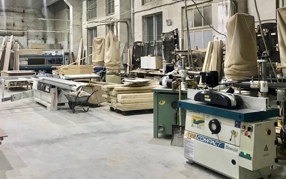 Парк оборудования: прессы, гильотина, фрезер с ЧПУ, кромочный, калибровальный, фрезерные, рейсмусовый, раскроечный станки, компрессор винтовой, ваймы гидравлические, механические, посты покраски, покрасочные кабины. Ручной инструмент, пылесосы, вытяжки, автоподатчики и проч. Оборудование в основном импортное. Стоимость оборудования ( без стоимости интрумента, фрез и проч) = 7 500тр