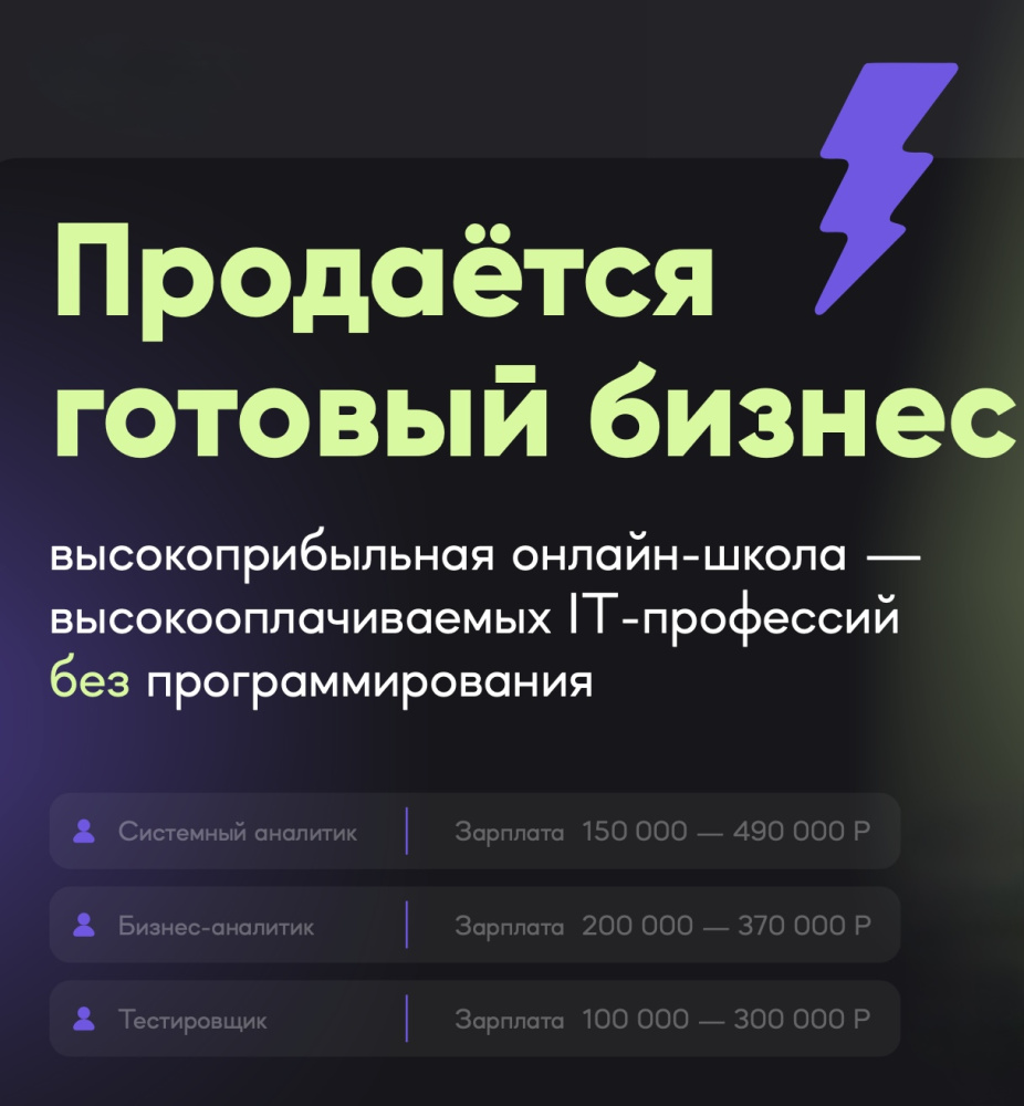 Продаётся прибыльный и устойчивый бизнес — онлайн-школа, обучающая востребованным IT-профессиям: бизнес-аналитикам, тестировщикам и системным аналитикам. В основе модели обучения лежит ISA (Income Share Agreement), при которой оплата происходит только после успешного трудоустройства, что значительно повышает конверсию и уровень доверия.