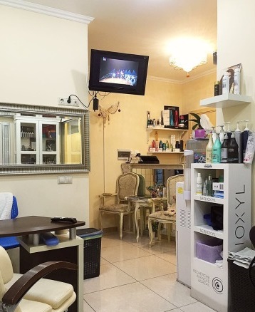 Салон разделен большими стеклянными дверями на 2 зала. В парикмахерском зале имеется мойка, дорогое кресло, шкаф для красок, стеллаж, доп. кресла и зона для маникюра, что позволяет делать «услугу в 4 руки одновременно» красители Loreal Inoa, Dialight, Hot kyture, технические шампуни, бальзамы, уходы, экранирование, ламинирование, фирменные полотенца, телевизор.