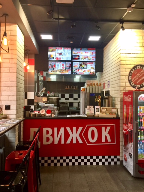 Кафе быстрого питания на пешеходной улице с большим трафиком
