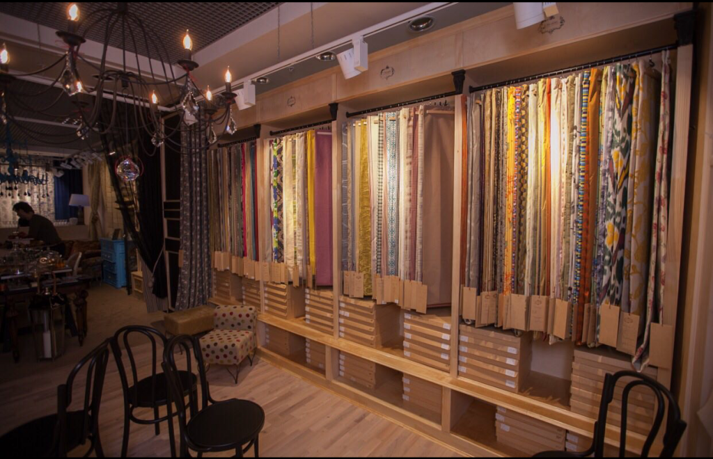 Полностью оборудованный магазин предметов интерьер и готовых штор со складом