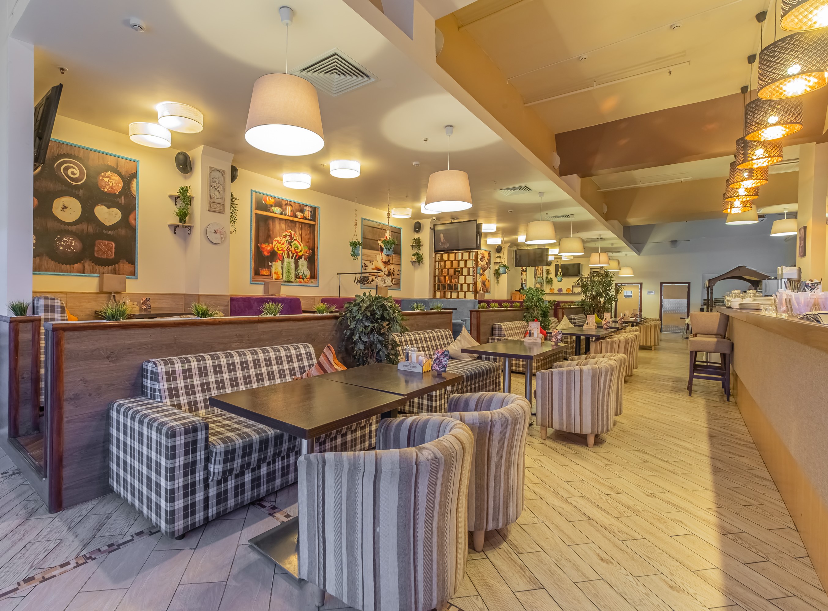 Ремонт в ресторане выполнен в светлых тонах