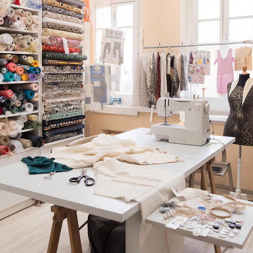 · Мебель: столы для раскроя, рабочие столы, стулья, стеллажи, шкафы, диван, зеркала и др.