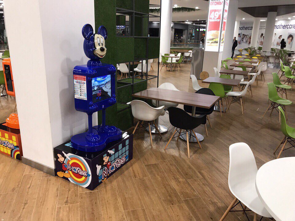 Два игровых комплекса N-Kids, в форме мультипликационных героев Уолт Диснея – Микки Мауса и Тимона. Два аппарата находятся в работе, в одном из самых крупных и успешных ТРЦ в Тюмени в оживленной зоне фуд – корта на 2 этаже. Работают на правах аренды двух точек по 1 м2. Арендная плата составляет 7,5 тысяч рублей в месяц за 1 аппарат.