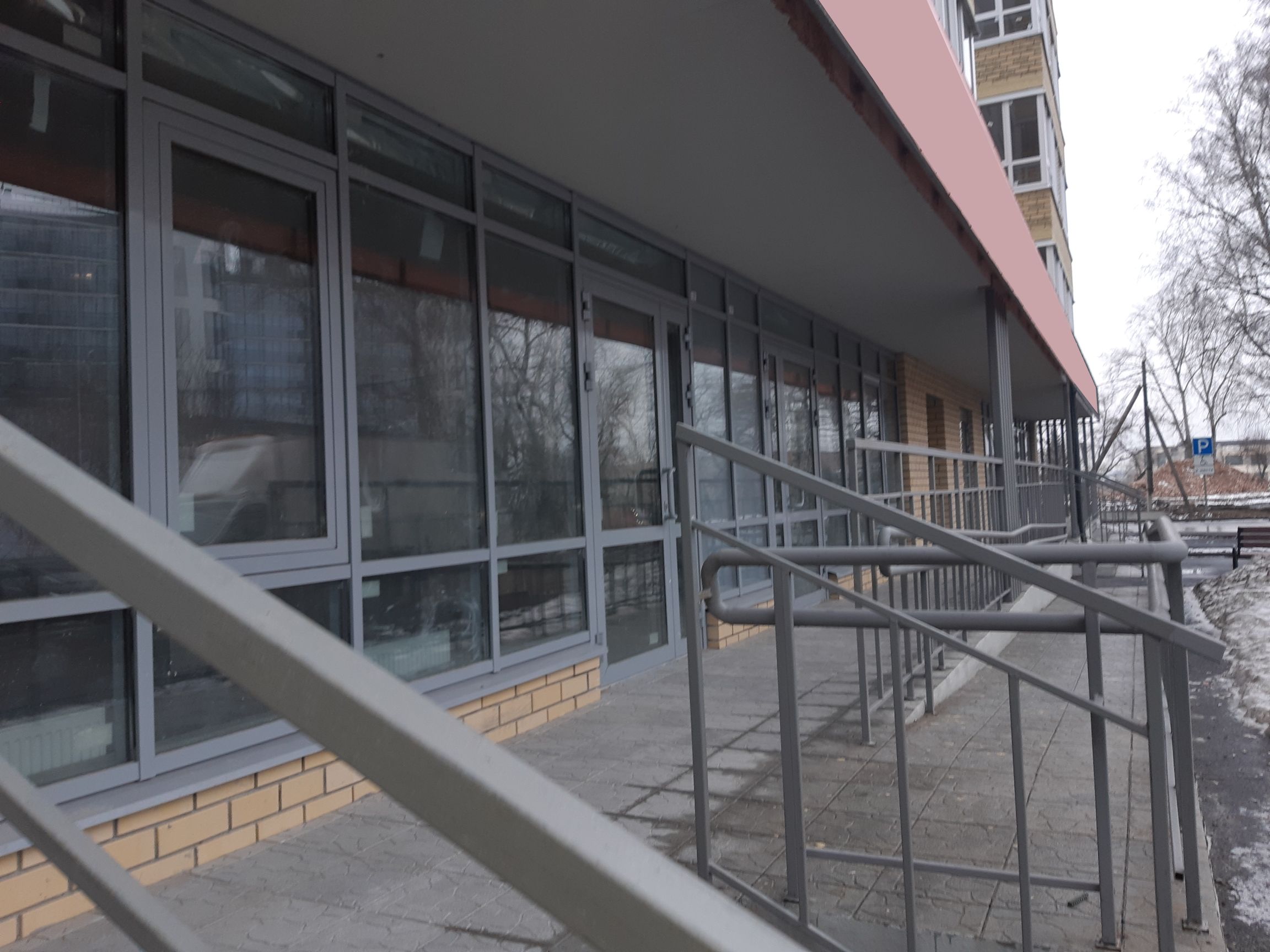 2) Выделенная входная зона на 1 линии,предусмотрены конструкции для размещения вывесок на фасаде,