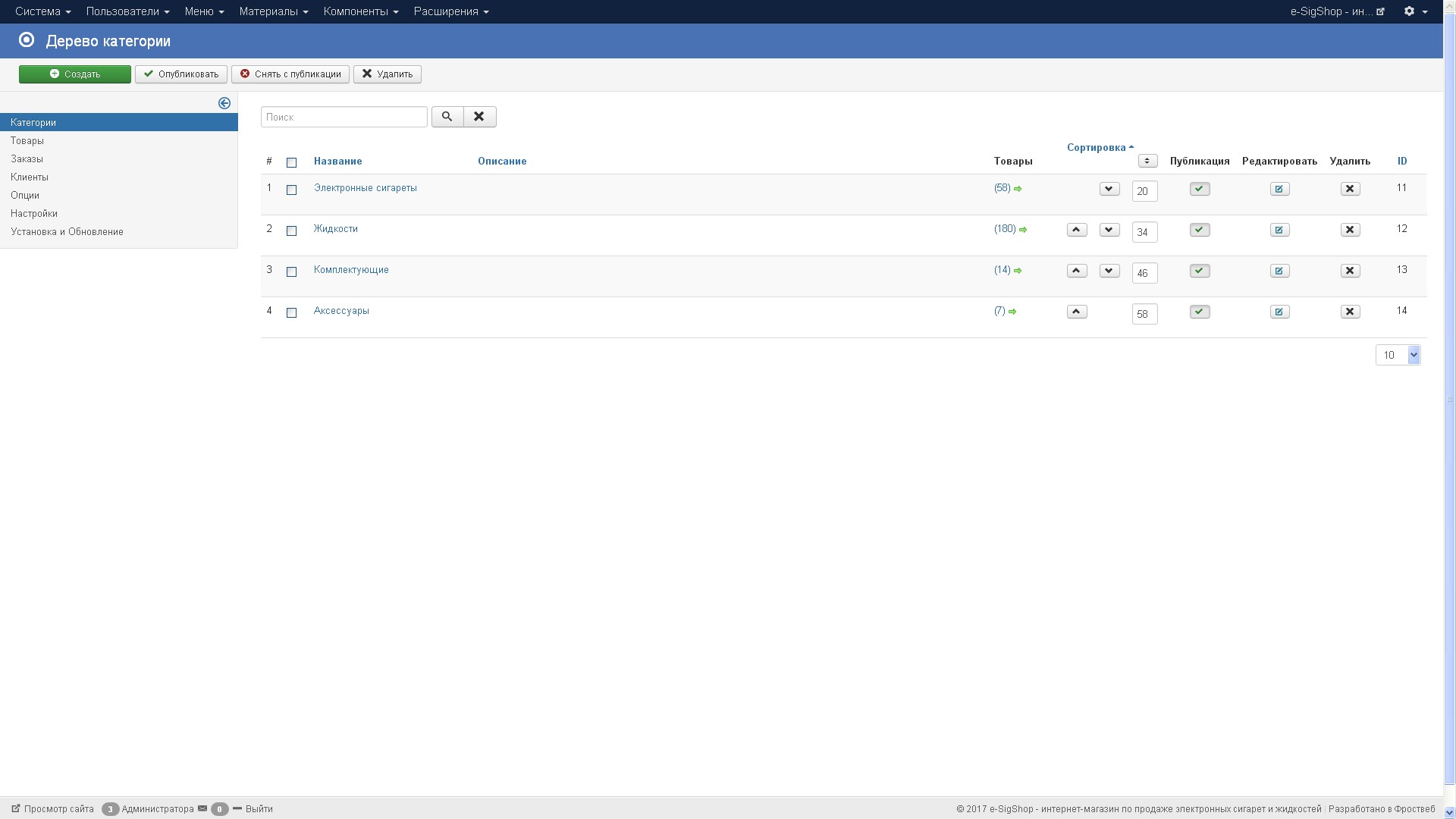 Функционал интернет-магазина не ограничен и может дорабатываться без особых проблем т.к. работает он на CMS Joomla 3 + JoomShopping 4. Товары можно добавлять как вручную так и через import/export.