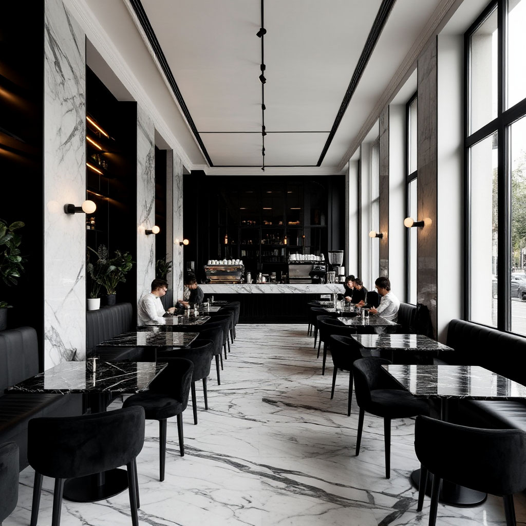 Необычное концептуальное кафе в чёрно-белом стиле — готовый бренд с узнаваемой идеей и историей.